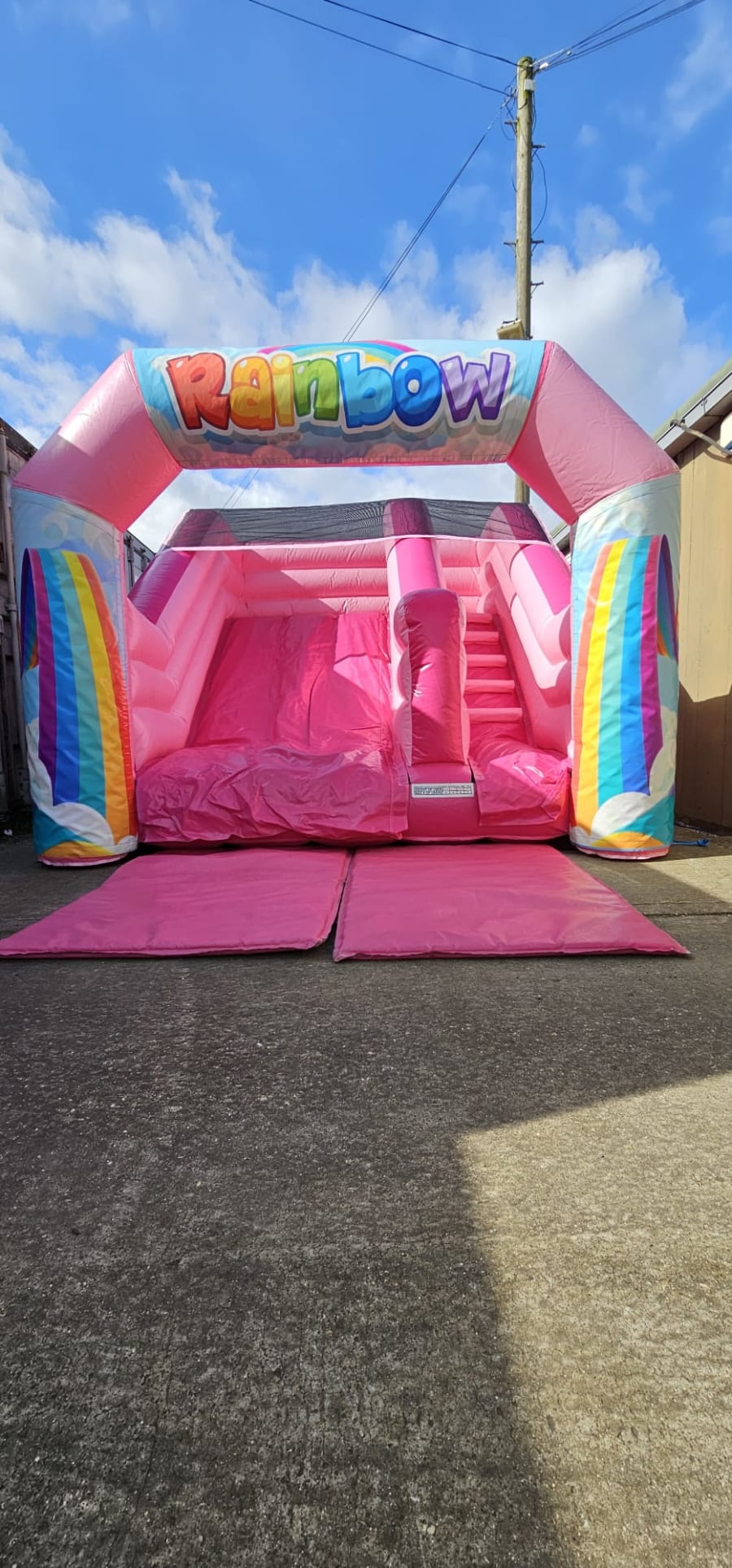 12ft by 12ft Rainbow pink mini slide