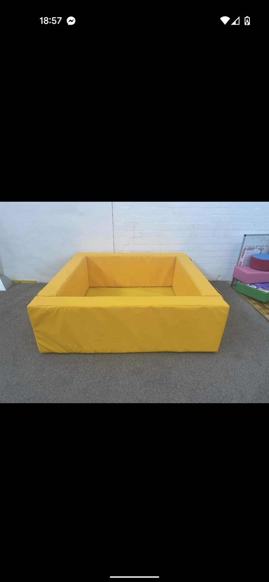 Our new bright yellow ball pool available to hire on its own or with other shapes