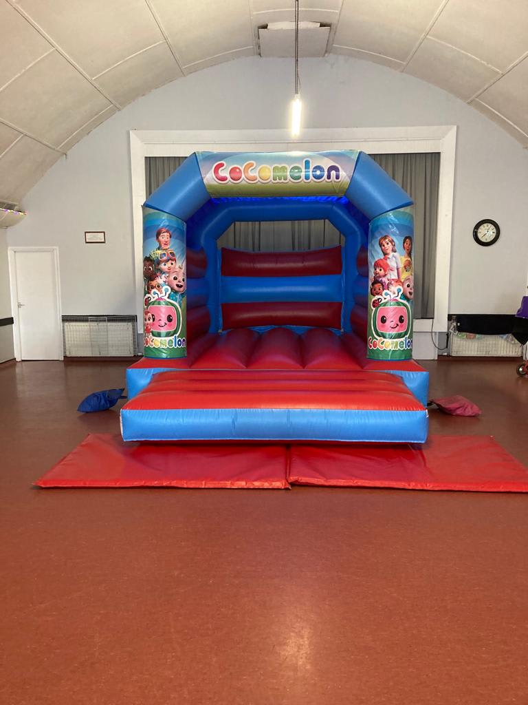 Our lovely new Cocomelon Bouncy castle available for garden or Hall hire.