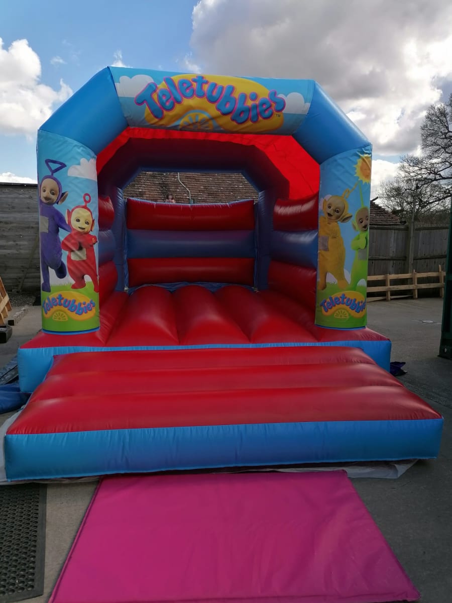 Our new bright coloured 11 by 15ft Teletubbie standard castle is available for any party or event