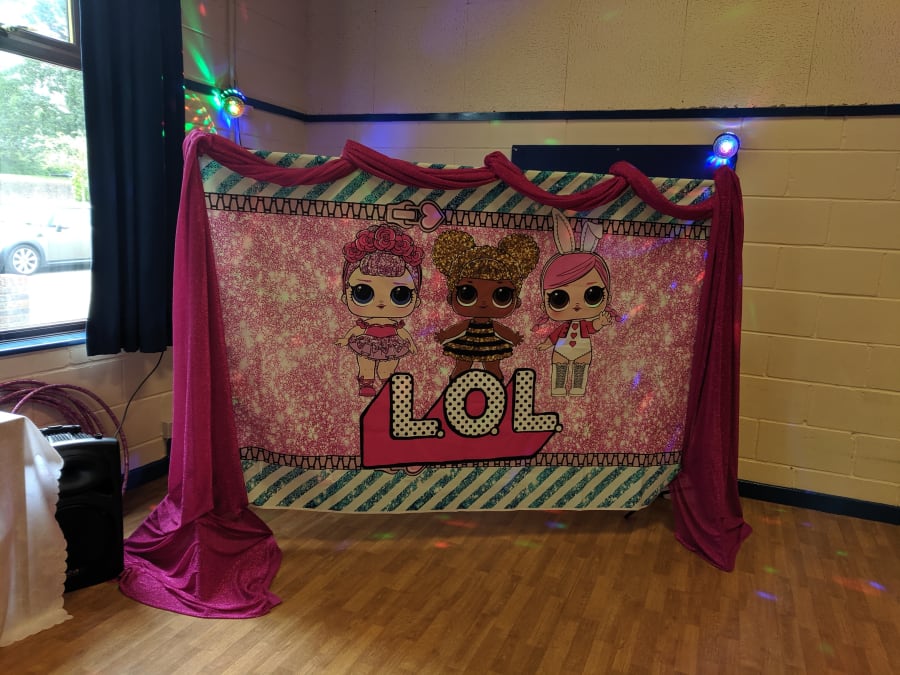 This lovely LOL Backdrop is available to add to any LOL party.